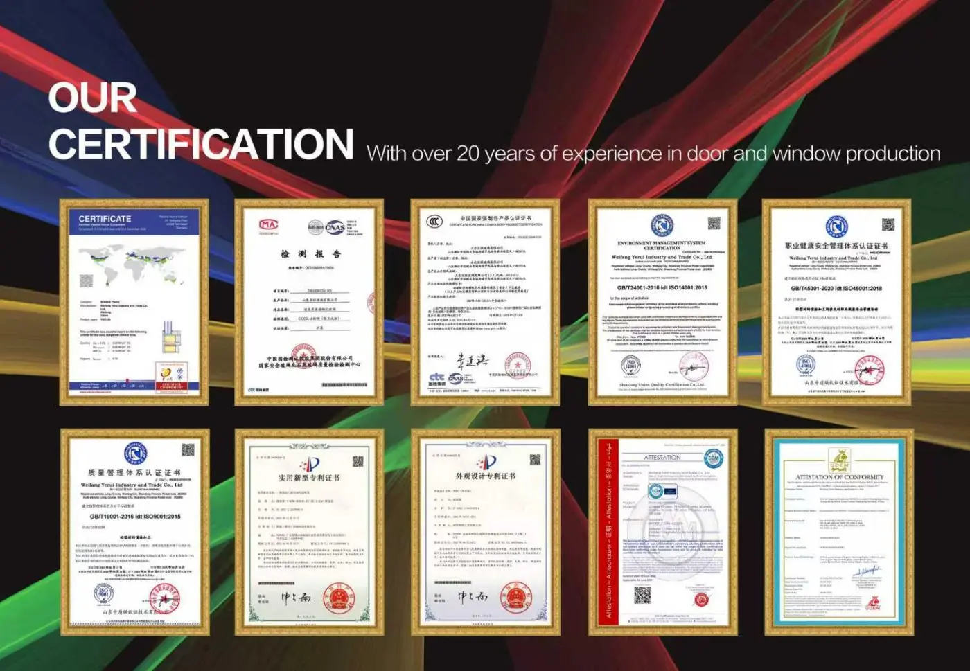 Weifang Yirui Industry and Trade Co., LTD. mainly produces building profiles, industrial profiles, supporting curtain wall and door and window profiles, fire-resistant glass, tempered glass, energy-saving LOW-E insulating glass, laminated glass, precision edge glass, etc., and also manufactures system doors and windows, folding doors and windows, electric windows, automatic electric doors, commercial doors, sliding doors, sunrooms, pavilions, aluminum flower racks, Chinese-style windows, European-style windows as well as aluminum railings and glass railings suitable for indoor and outdoor use, which have good outdoor corrosion resistance and high indoor safety factor, and all products can be customized according to different customer requirements.
